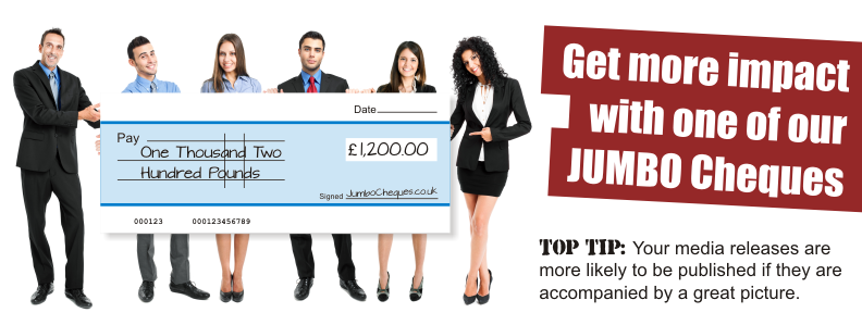 Our Jumbo Cheques are great for all sorts of occasions, they make a BIG impact and bring a sense of ceremony and fun to any occasion. They are a great publicity tool; helping to create the sort of picture that the media love. We print all our Jumbo Cheques at our premises, right here in the UK, so by shopping with us today you will be supporting UK business and manufacturing.